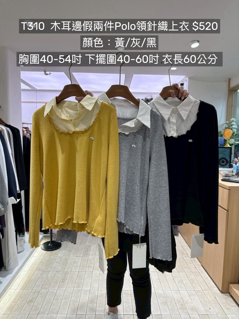 熱賣中🔥 即將售完T310木耳邊假兩件襯衫領針織上衣
