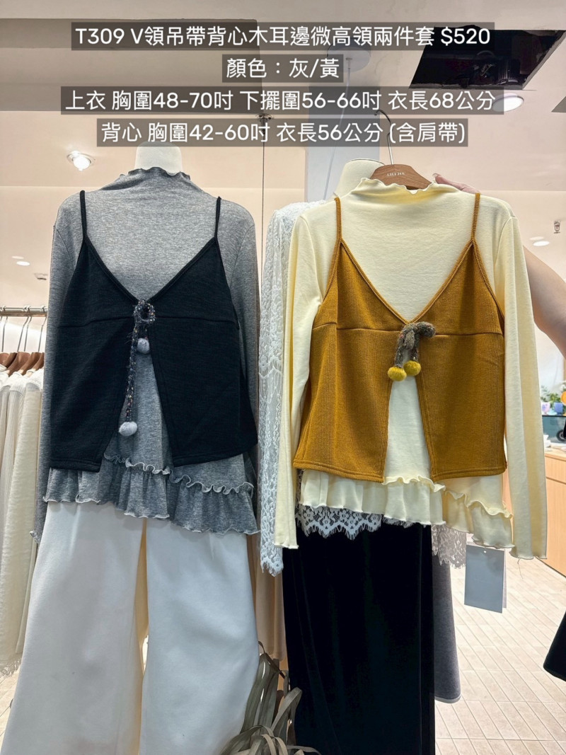 熱賣中🔥 即將售完T309V領吊帶背心木耳邊微高領兩件套(黃)