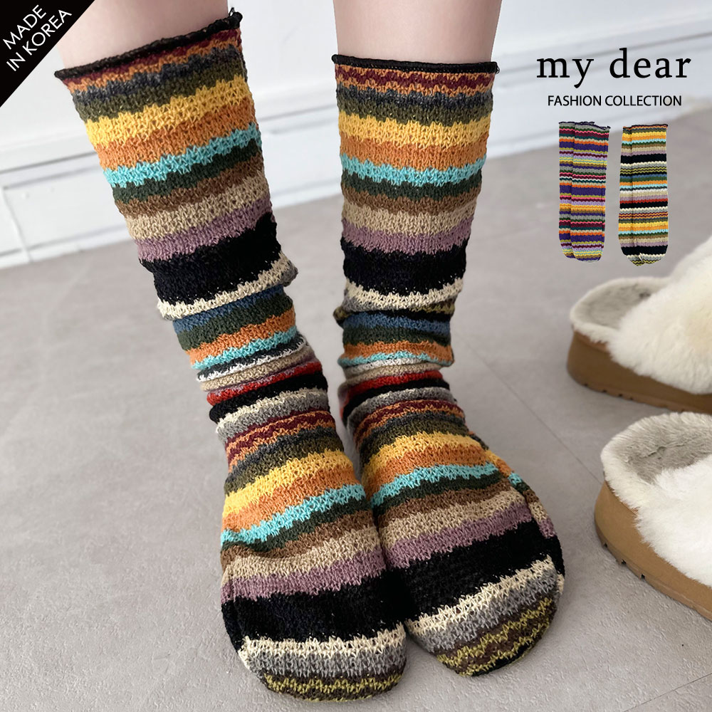 熱賣中🔥 即將售完MD韓製/俏皮彩色織紋長襪子2色【A09250055】