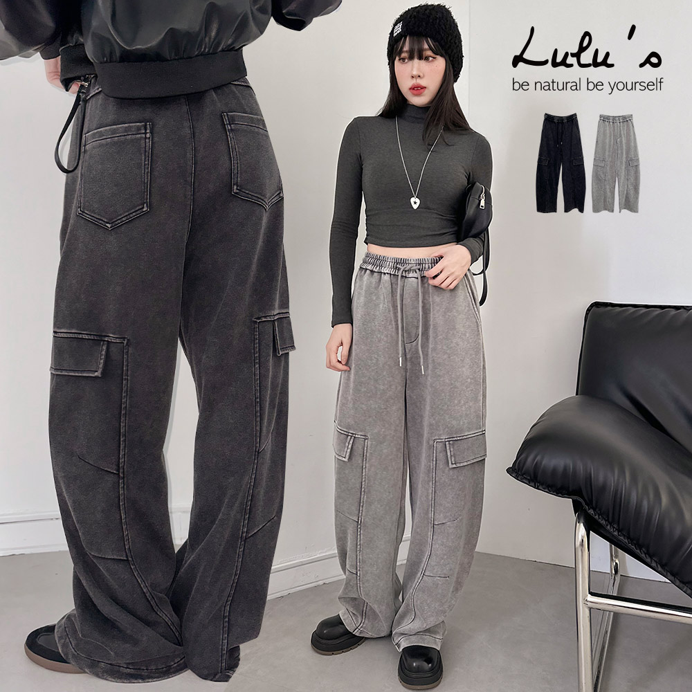 熱賣中🔥 即將售完限時下殺/造型車線口袋水洗腰鬆緊長褲2色【A04250238】