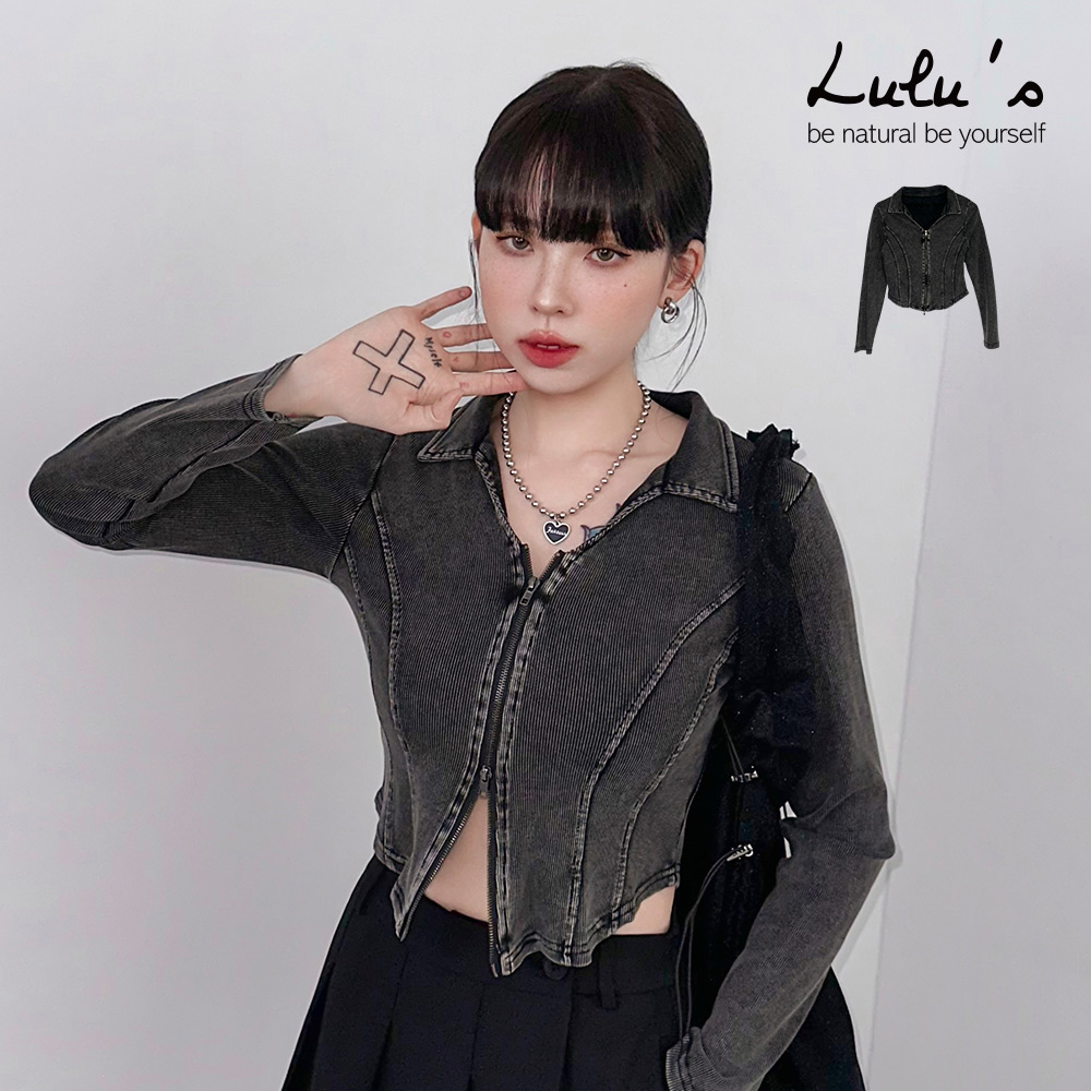 熱賣中🔥 即將售完限時下殺/修身車線雙拉鍊水洗翻領上衣黑灰【A01250931】