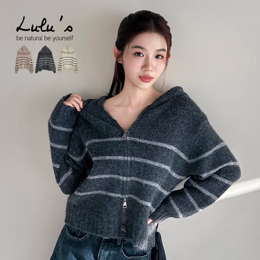 熱賣中🔥 即將售完限時下殺/簡約橫紋雙拉鍊針織連帽外套3色【A03250116】