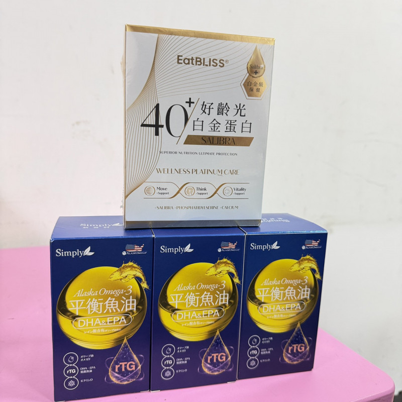 熱賣中🔥 即將售完第10標 Simply新普利365平衡魚油60入*3盒+Eatbliss益比喜S702好齡光白金健體素3入 $1880