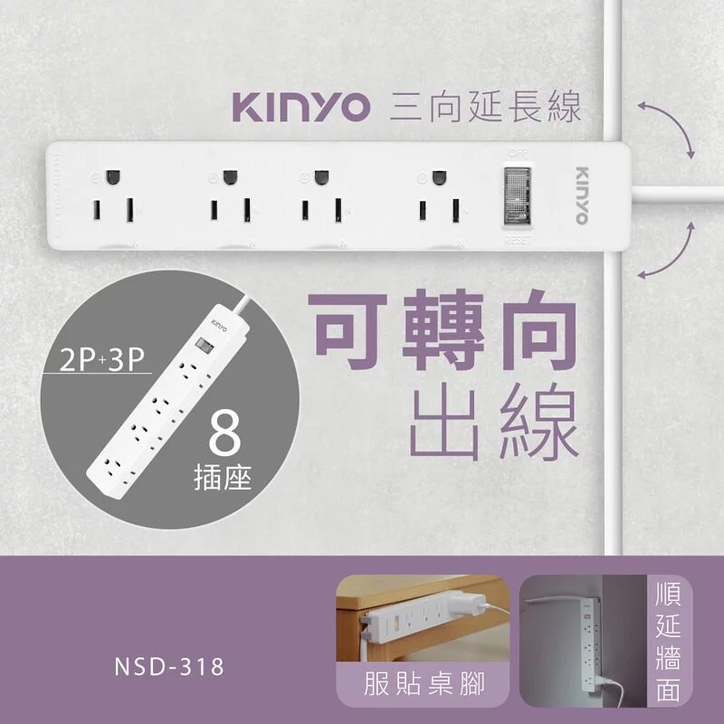 熱賣中🔥 即將售完KY-NSD3186 1開8插三向出線3P延長線