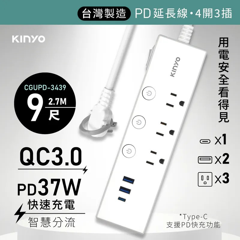 熱賣中🔥 即將售完KY-CGU-3549五開四插USB延長線9尺