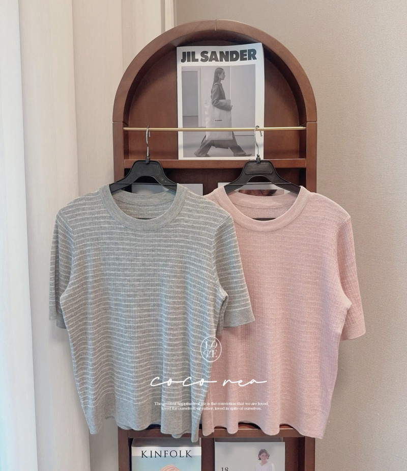 熱賣中🔥 即將售完110標 預購 小橫紋全彈性天絲針織上衣 灰/粉 胸98 長55 韓國連線價980喜歡+1帶哪裡取(A嘉義取B台中取C郵寄)