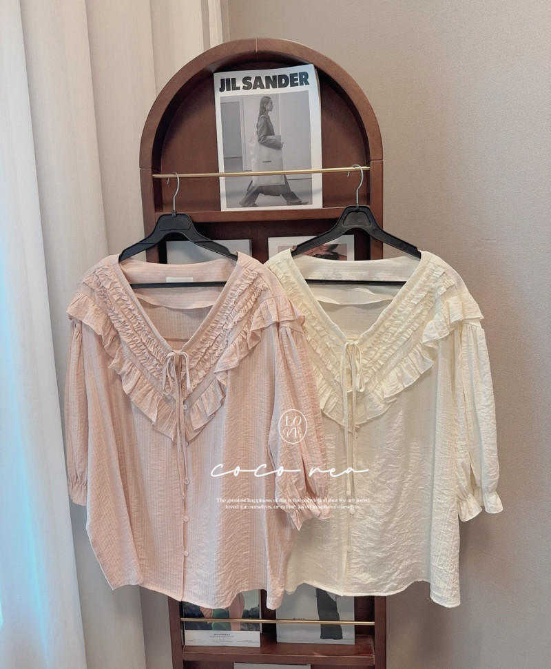 熱賣中🔥 即將售完113標 預購 V領荷葉抗皺直紋上衣 粉/米 胸136 長69 限量30件韓國連線價1780(線上價$1599喜歡+1帶哪裡取(A嘉義取B台中取C郵寄)