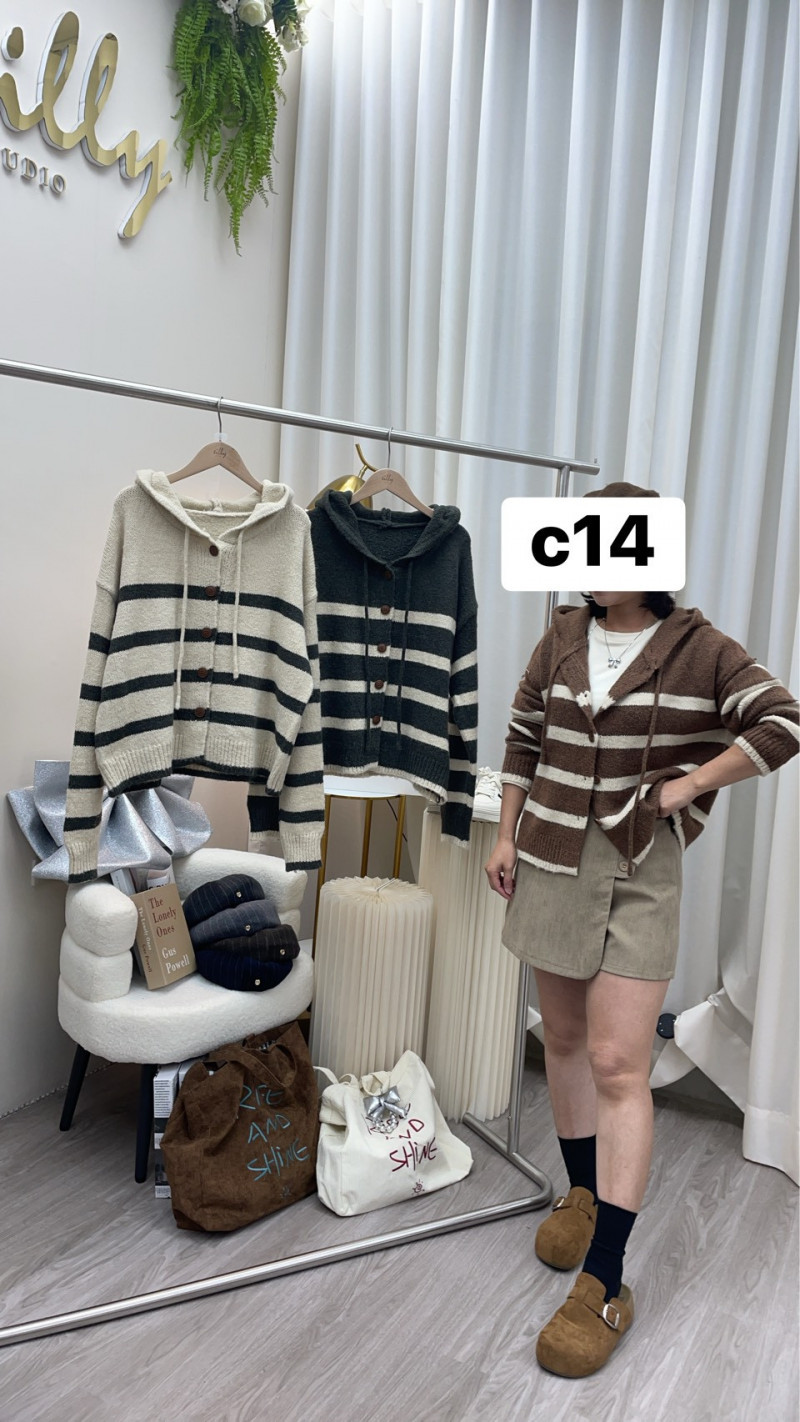 熱賣中🔥 即將售完C14款 (3636)連帽厚磅排釦毛線外套$338