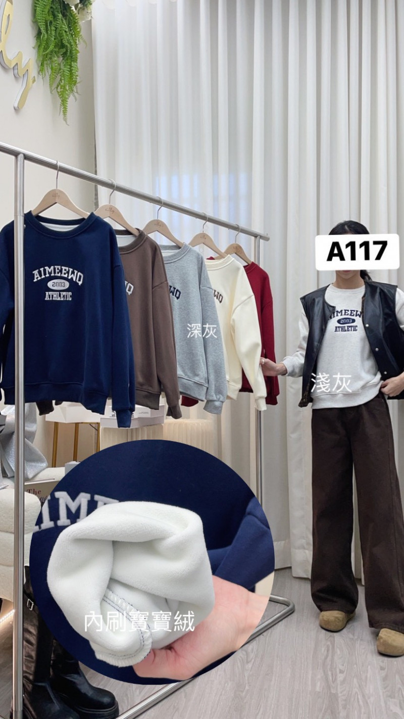 熱賣中🔥 即將售完A117款 (222)AI刺繡美式寶寶絨大學T$250