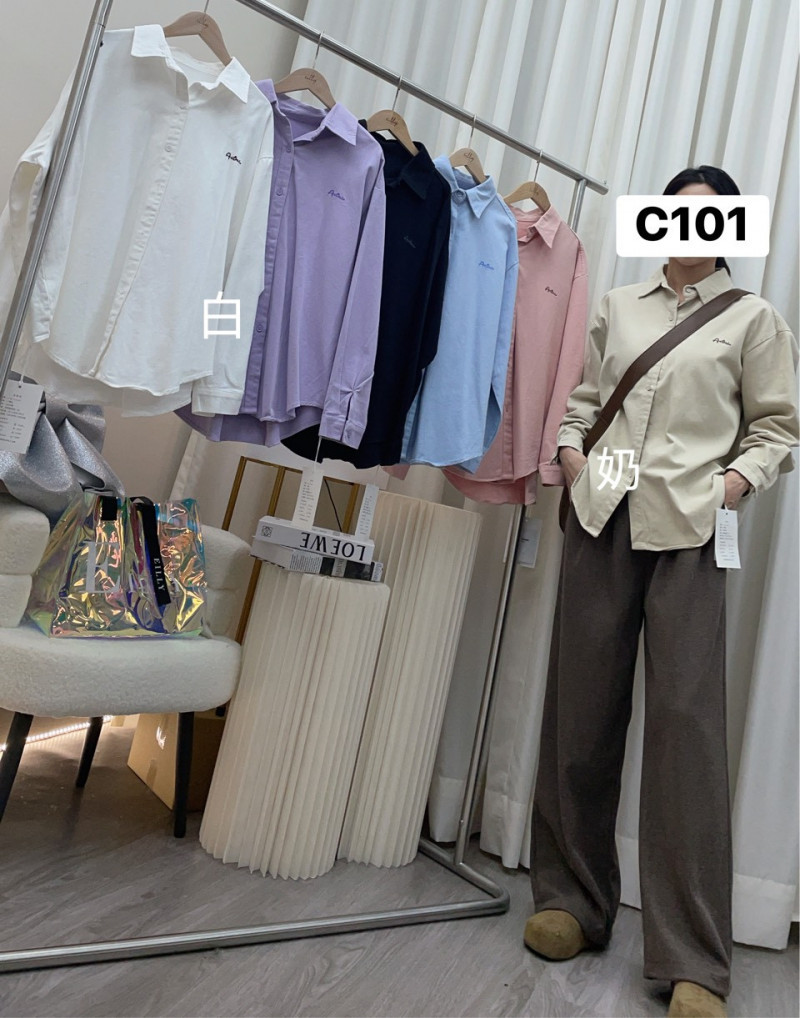 熱賣中🔥 即將售完C101款 (8011-9)草寫字母刺繡斜紋襯衫$299