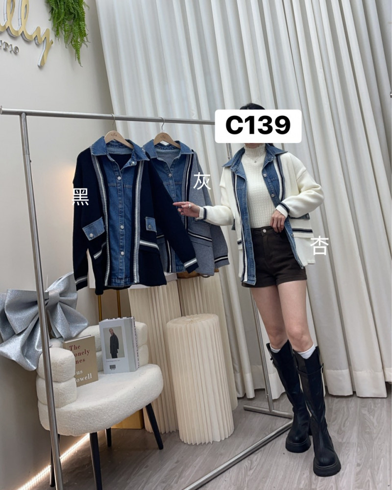 熱賣中🔥 即將售完C139款 (2520)撞色針織拚牛仔外套$399