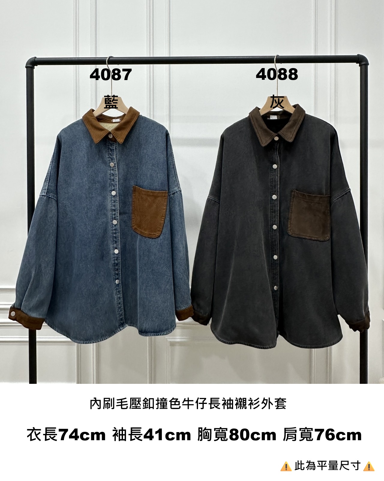 熱賣中🔥 即將售完(預購012)女V0106-內刷毛壓釦撞色牛仔長袖襯衫外套