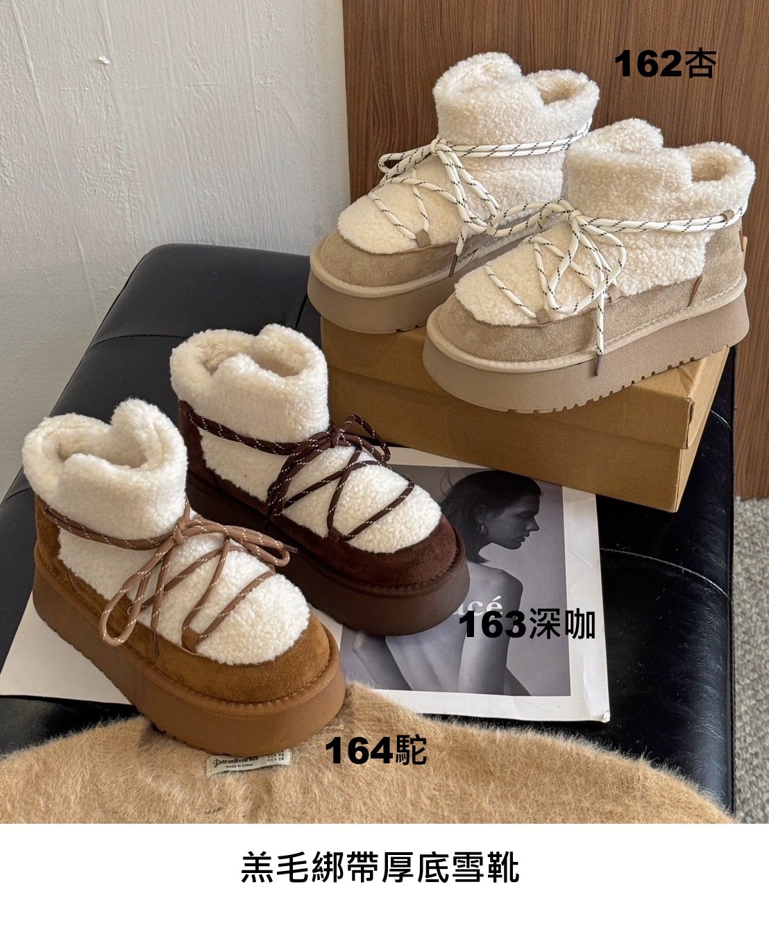 熱賣中🔥 即將售完(預購033)鞋A1127-164駝羔毛綁帶厚底雪靴