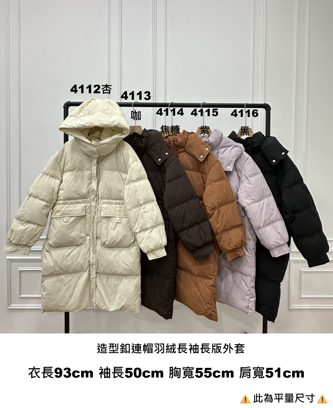 熱賣中🔥 即將售完(預購015)女V0106-造型釦連帽羽絨長袖長版外套