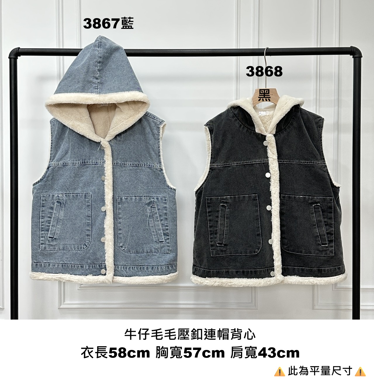 熱賣中🔥 即將售完(預購008)女V0103-牛仔毛毛壓釦連帽背心