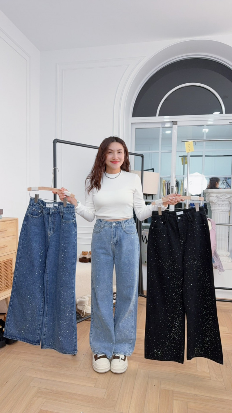 熱賣中🔥 即將售完(預購029)女V1219-燙亮鑽闊腿牛仔長褲