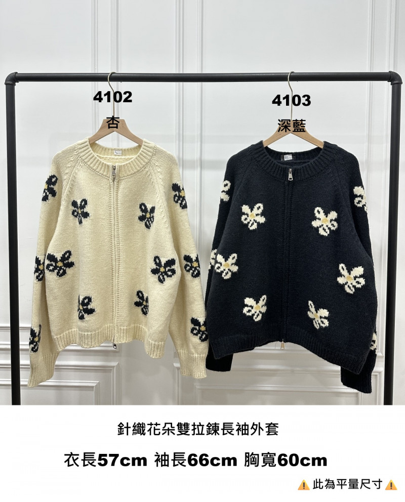 熱賣中🔥 即將售完(預購002)女V0106-針織花朵雙拉鍊長袖外套
