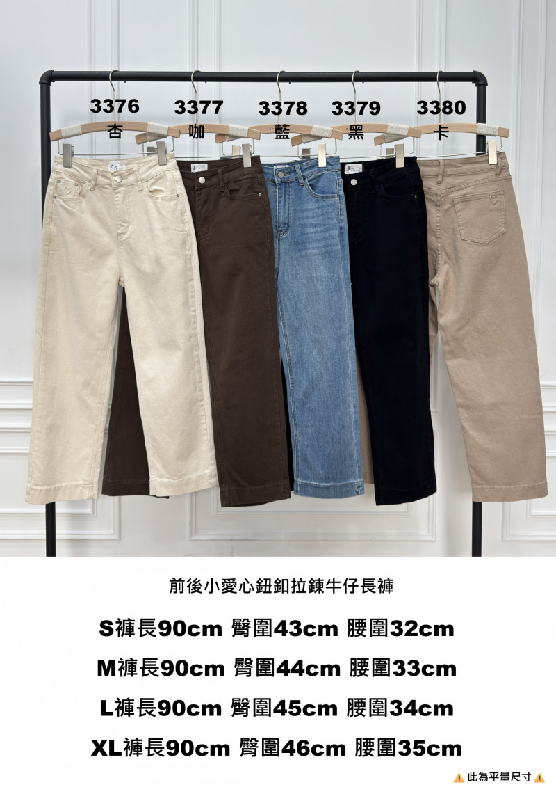 熱賣中🔥 即將售完(預購003)女V1126-3376杏前後小愛心鈕釦拉鍊牛仔長褲