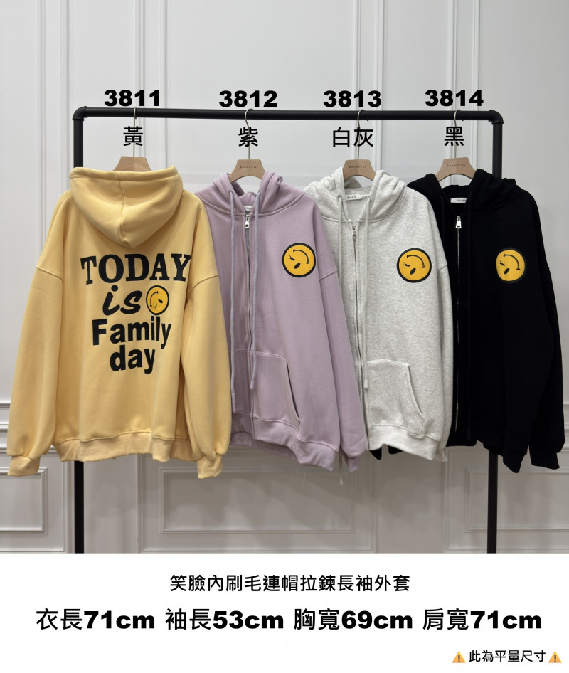 熱賣中🔥 即將售完(預購021)女V0102-笑臉內刷毛連帽拉鍊長袖外套