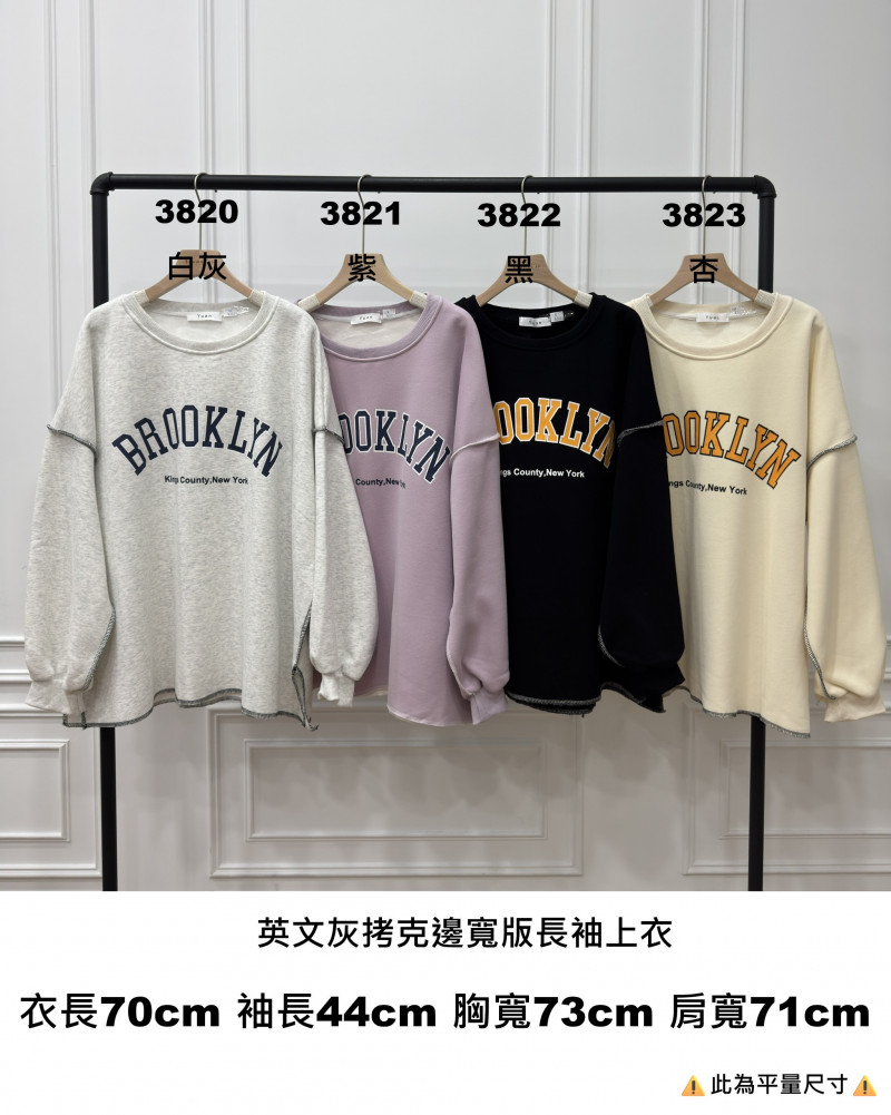 熱賣中🔥 即將售完(預購023)女V0102-英文灰拷克邊寬版長袖上衣