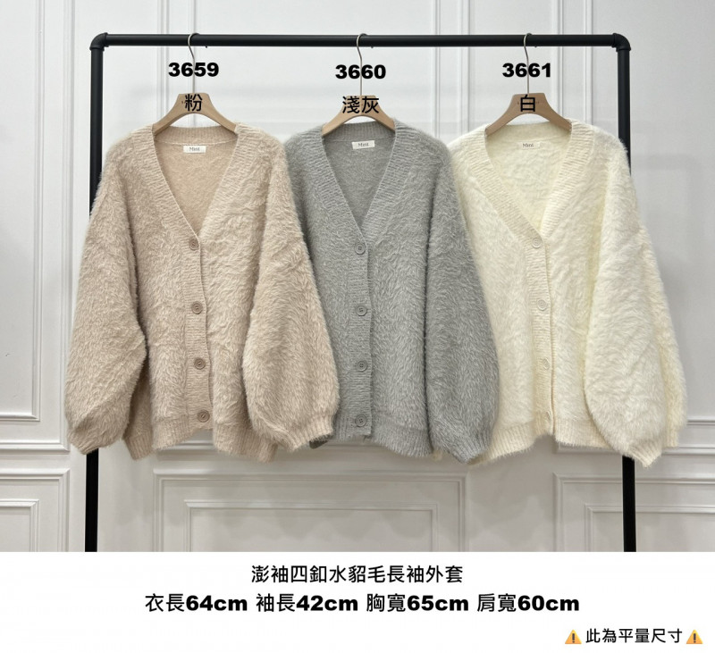 熱賣中🔥 即將售完(預購024)女V1217-澎袖四釦水貂毛長袖外套