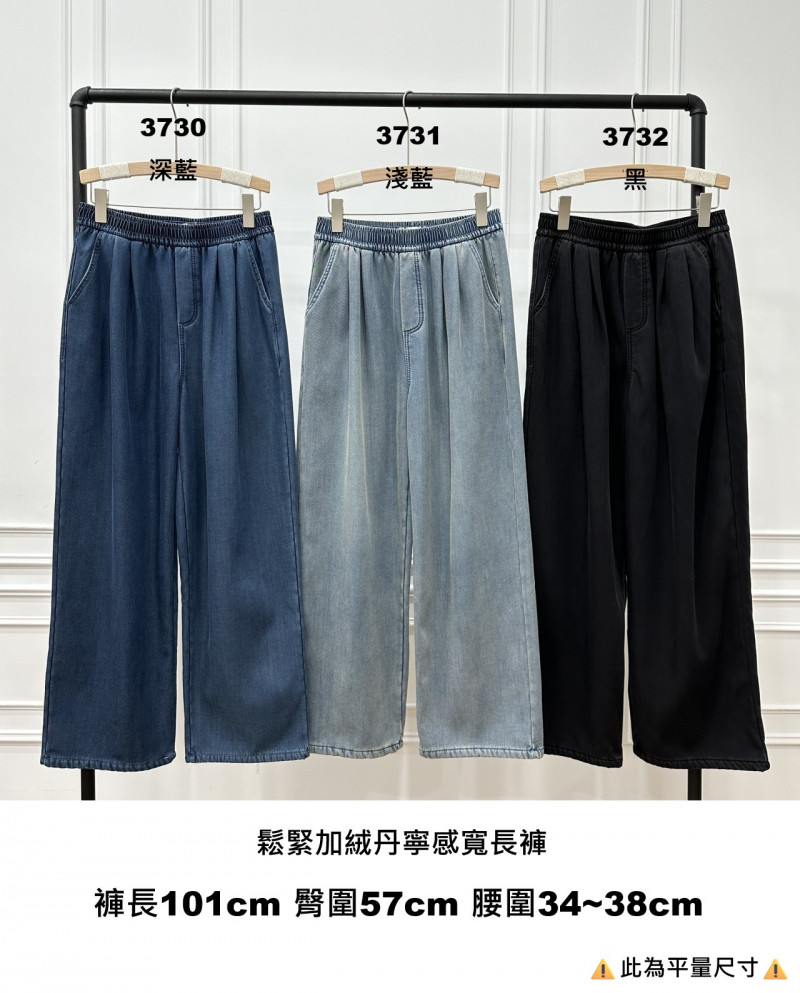 熱賣中🔥 即將售完女EM1219-鬆緊加絨丹寧感寬長褲