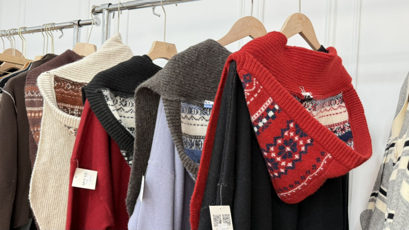 熱賣中🔥 即將售完配V1110-針織抽繩後標籤連帽圍巾