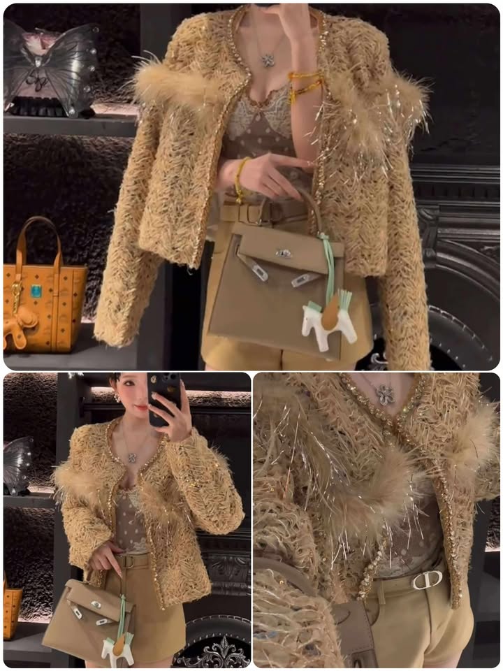 熱賣中🔥 即將售完625879高端鴕鳥毛小香外套$3380-連線價2999