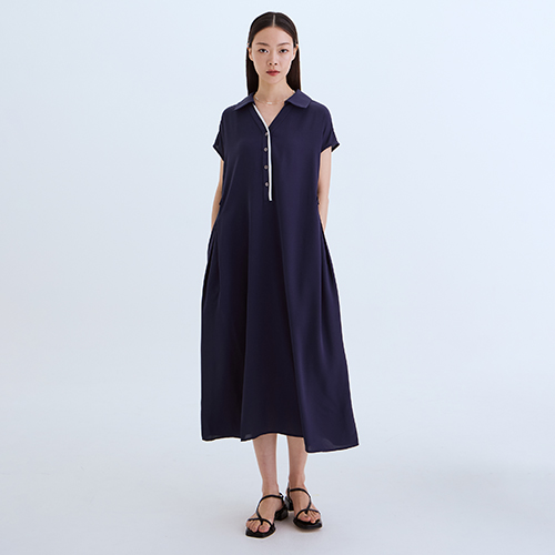 熱賣中🔥 即將售完【KLÚT】單邊撞色門襟翻領造型洋裝 - 兩色