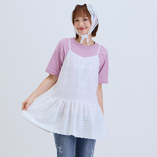 熱賣中🔥 即將售完【e-collection】蕾絲緹花造型純棉長版上衣 - 兩色