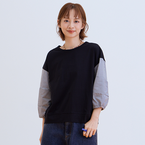 熱賣中🔥 即將售完【E-WEAR】拼接條紋袖造型上衣 - 兩色