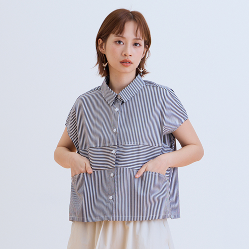 熱賣中🔥 即將售完【E-WEAR】雙向條紋拼接造型襯衫 - 兩色