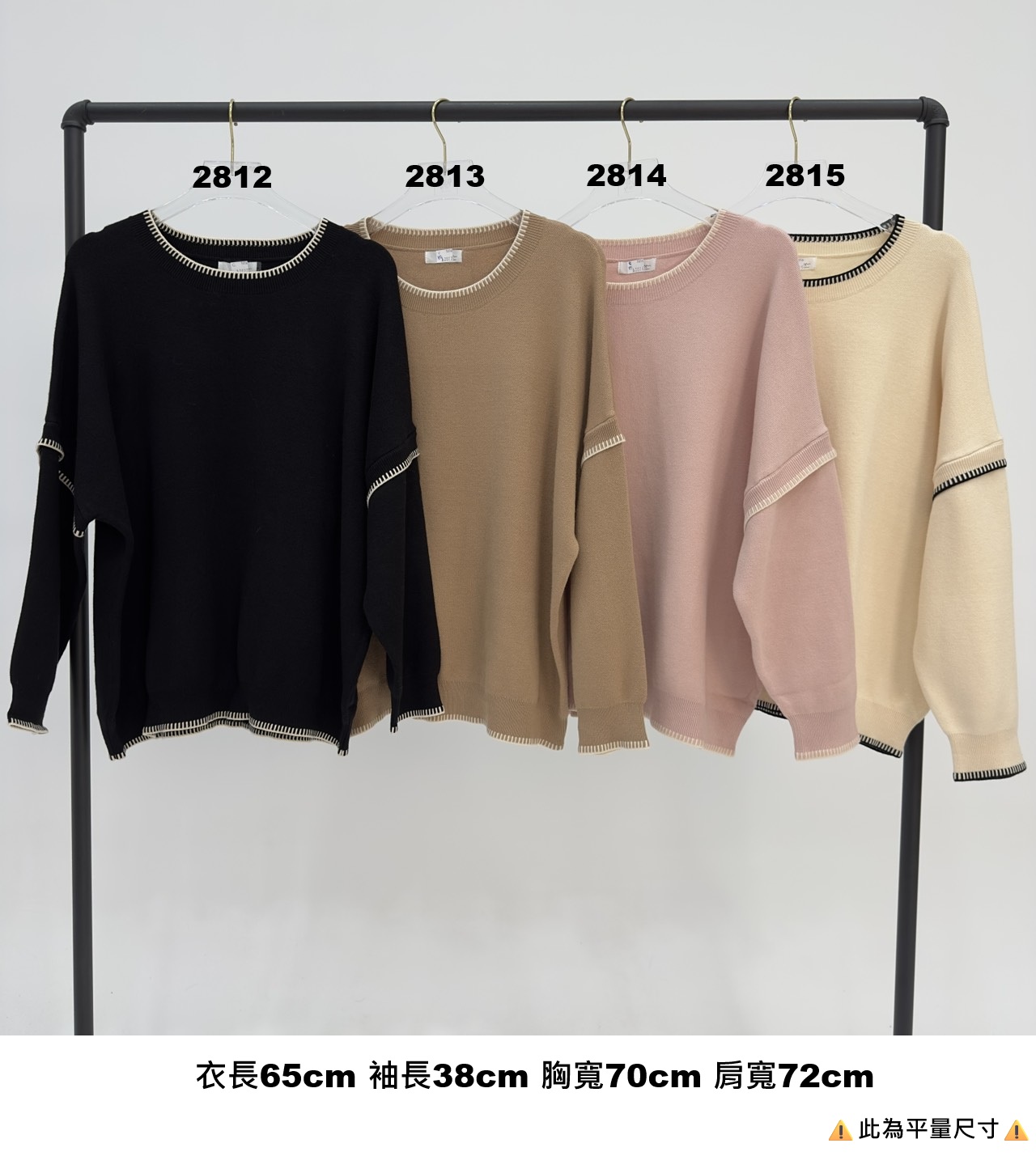 熱賣中🔥 即將售完女C1016-撞色滾邊圓領針織長袖上衣