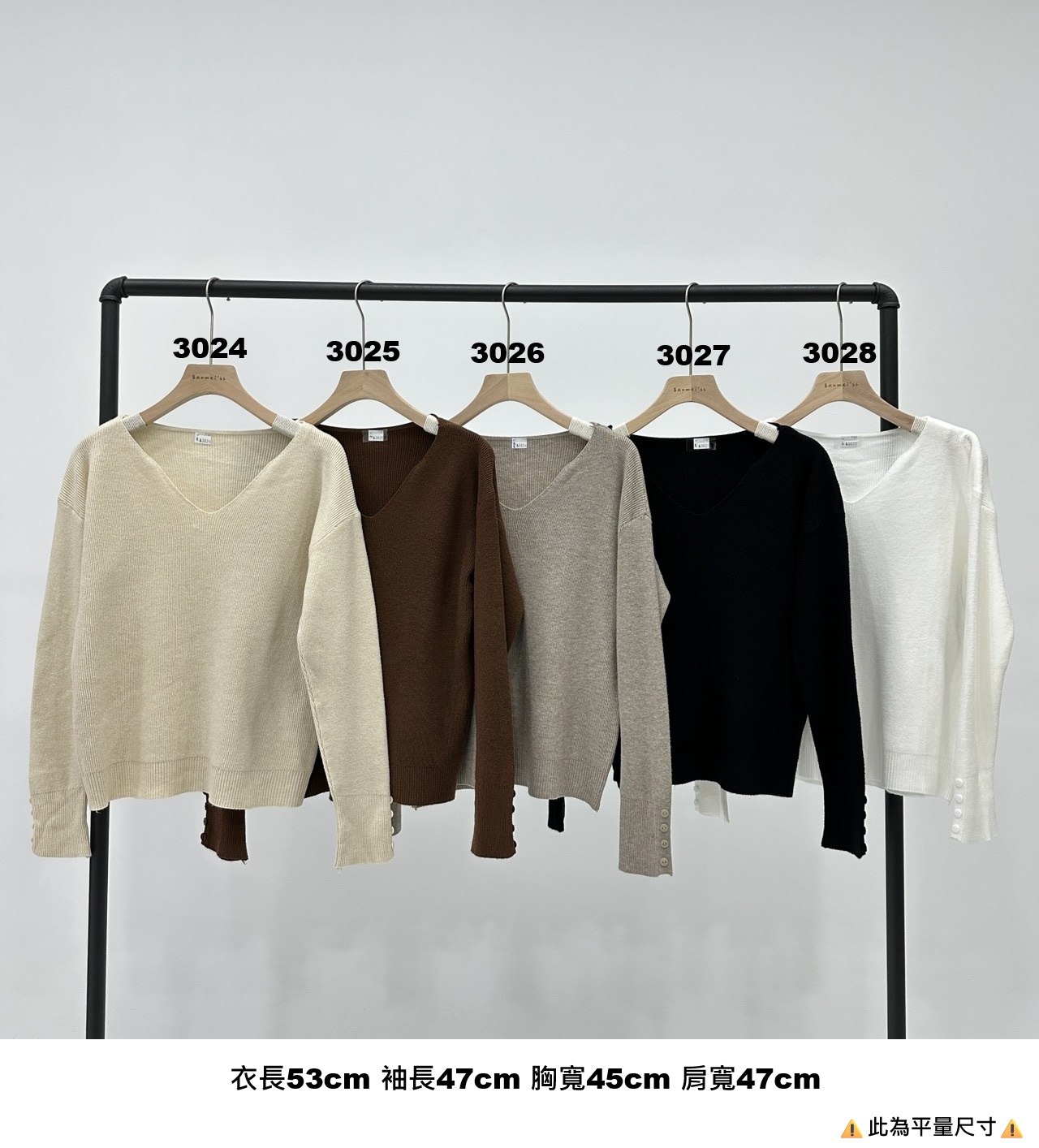 熱賣中🔥 即將售完女V1101-V領針織袖釦長袖上衣