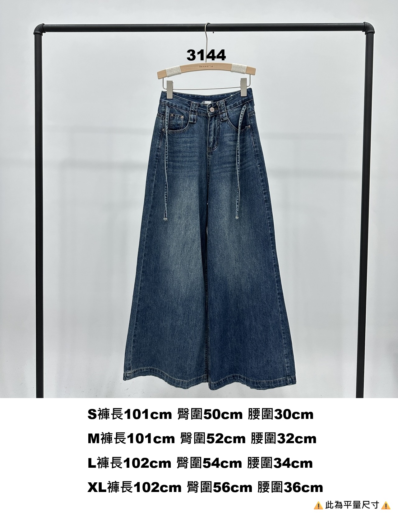 熱賣中🔥 即將售完女V1105-3144藍造型腰綁帶牛仔寬長褲