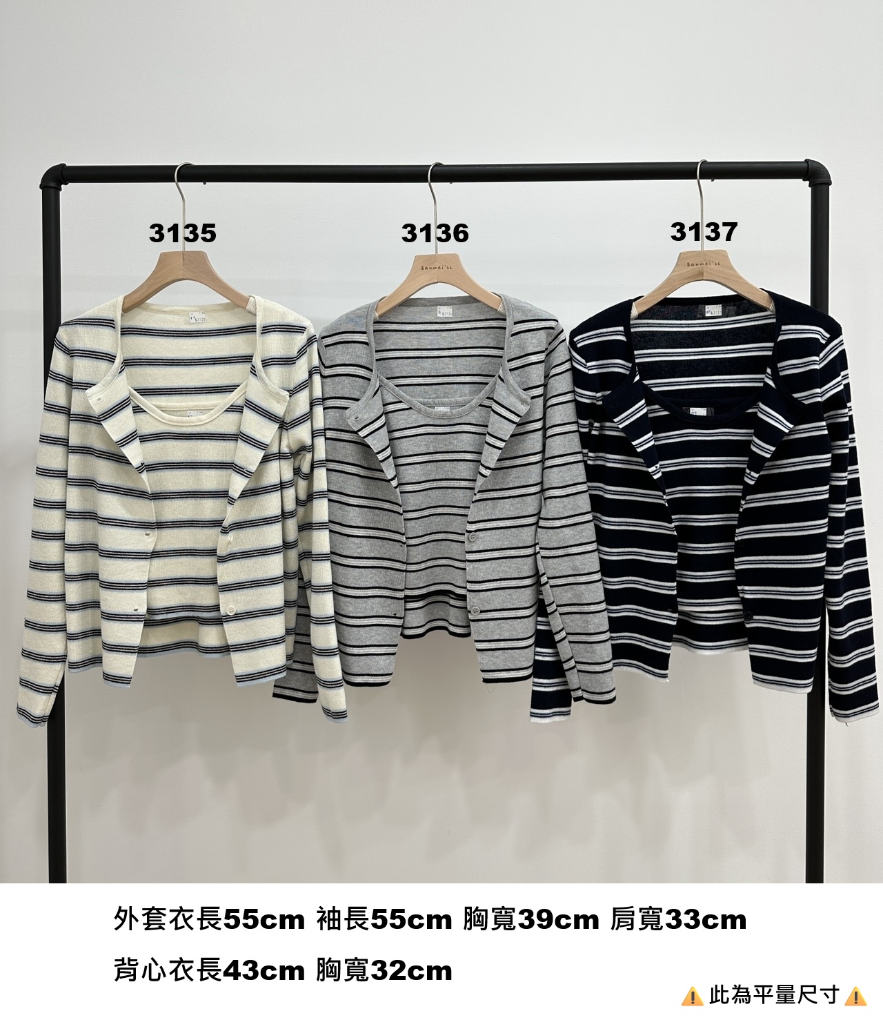 熱賣中🔥 即將售完女V1105-橫條紋針織鈕釦外套+細肩橫條紋背心