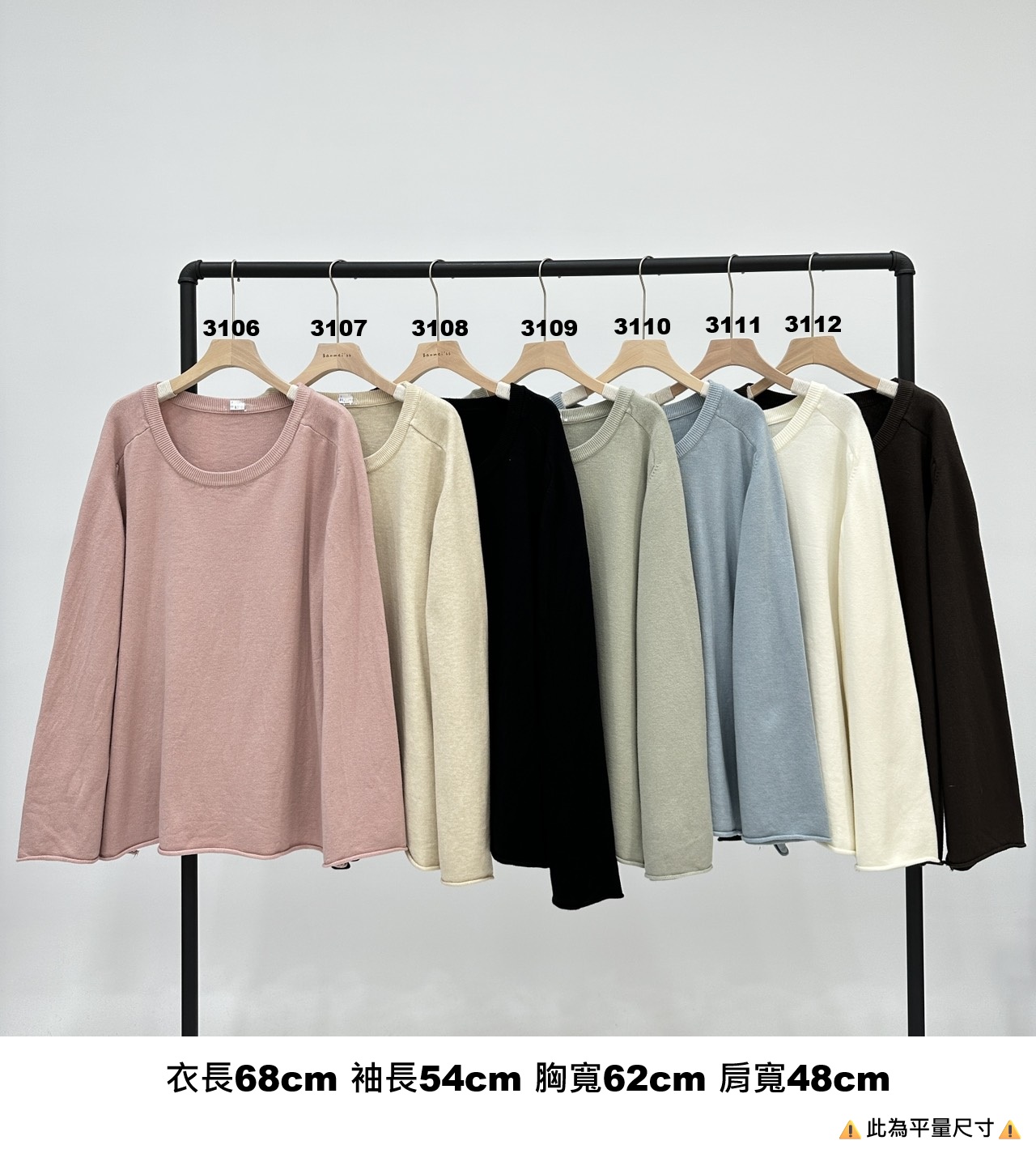 熱賣中🔥 即將售完女V1105-圓領捲邊素面針織長袖上衣