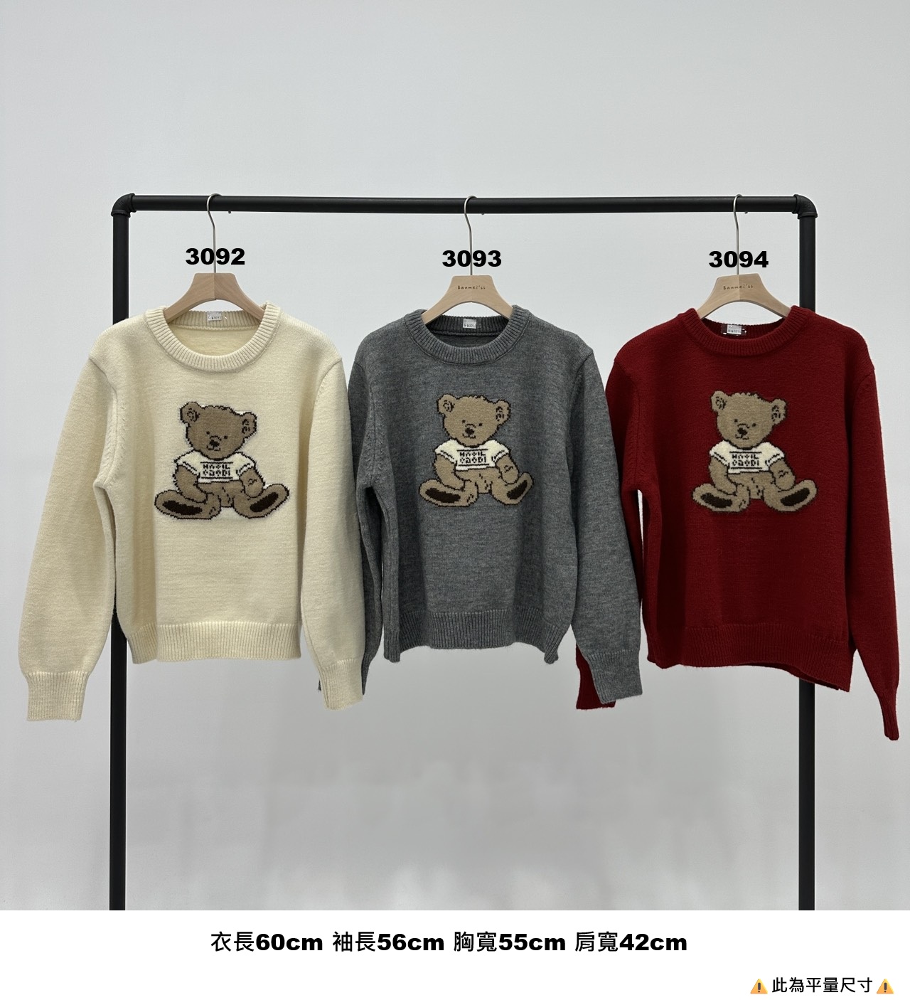 熱賣中🔥 即將售完女V1104-針織刺繡小熊長袖上衣