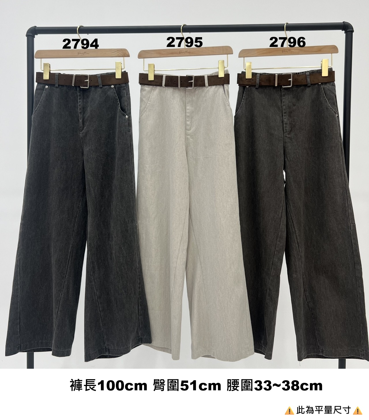 熱賣中🔥 即將售完女V1104-銀兩釦平口袋寬長褲附細黑皮帶