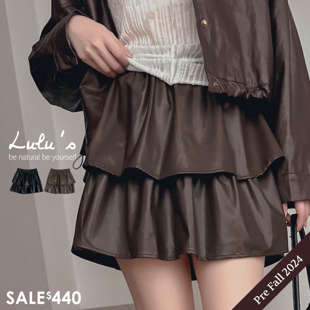 熱賣中🔥 即將售完直播優惠/質感女孩雙層荷葉邊皮質蛋糕裙S-L2色【A05240061】