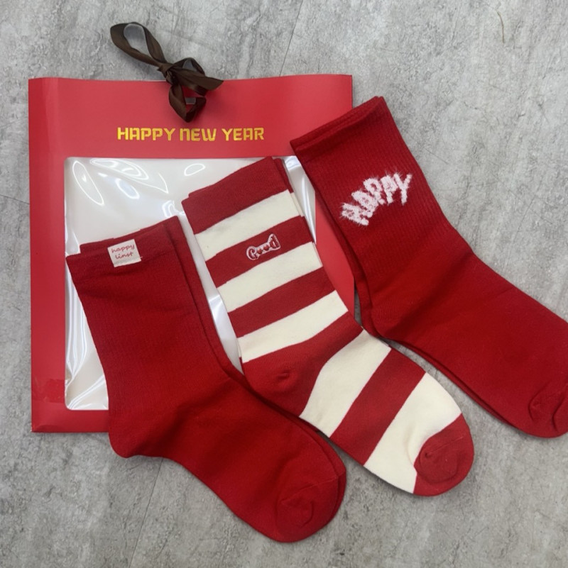 熱賣中🔥 即將售完品FA0115(10)-新年中筒襪(3入組)(771紅)