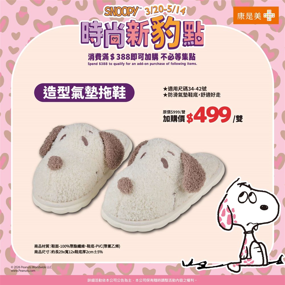 熱賣中🔥 即將售完SNOOPY造型氣墊拖鞋(2026/3/20開賣)