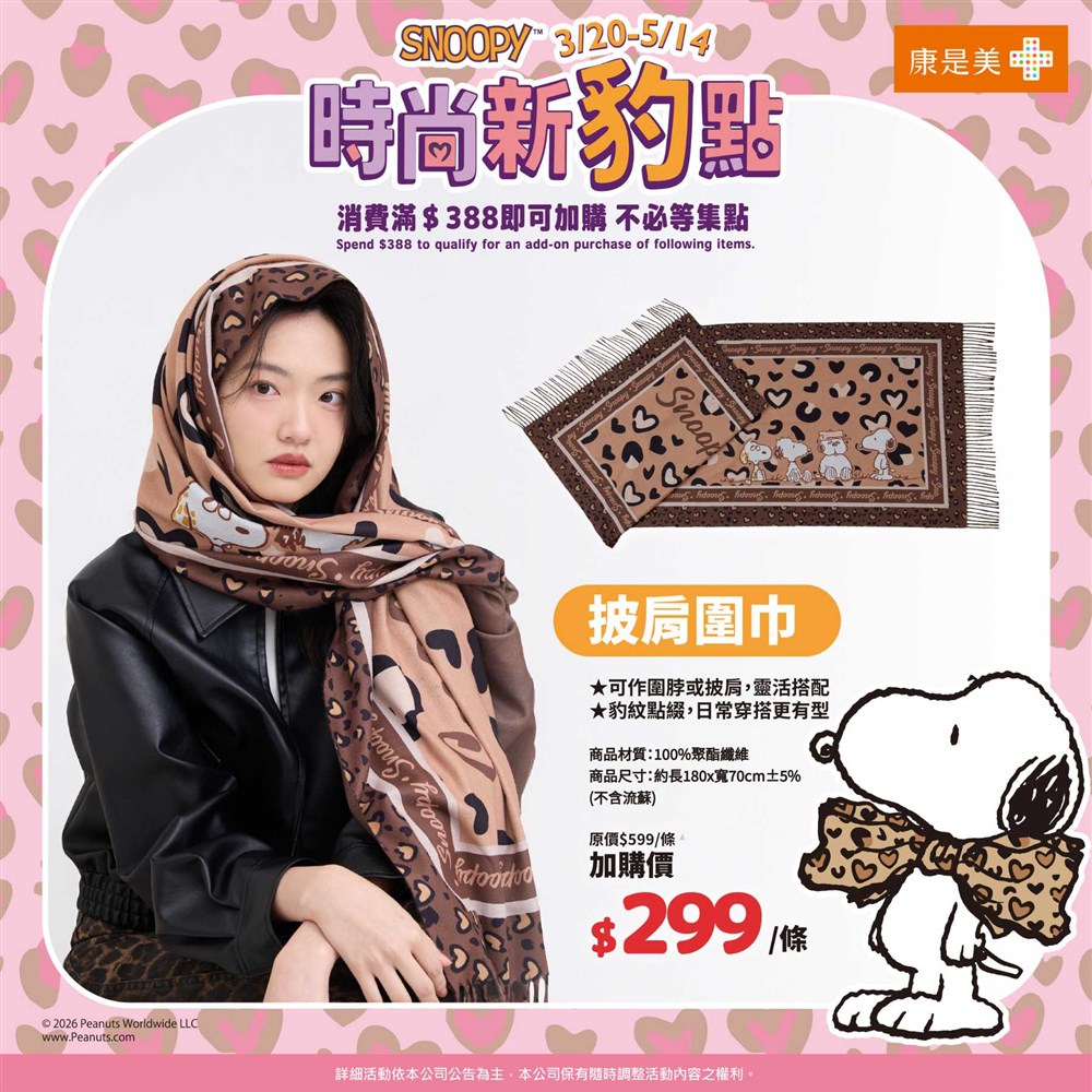 熱賣中🔥 即將售完SNOOPY披肩圍巾(2026/3/20開賣)