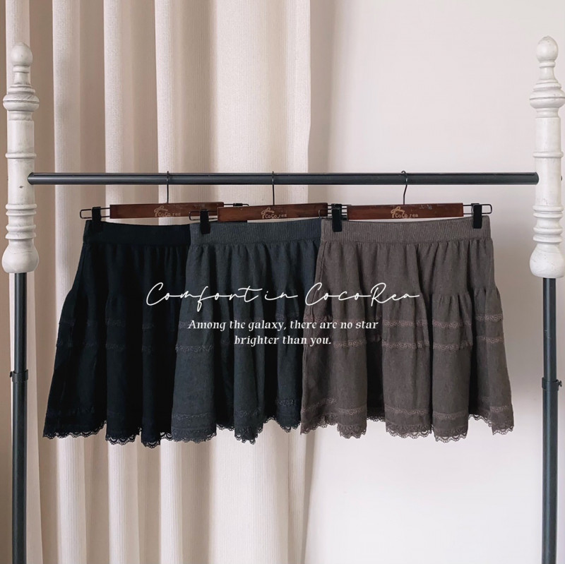 熱賣中🔥 即將售完34標 預購 小蕾絲滾邊針織短裙 黑/灰/咖 腰25-42 長42 限量30件連線價988喜歡+1帶哪裡取(A嘉義取B台中取C郵寄)