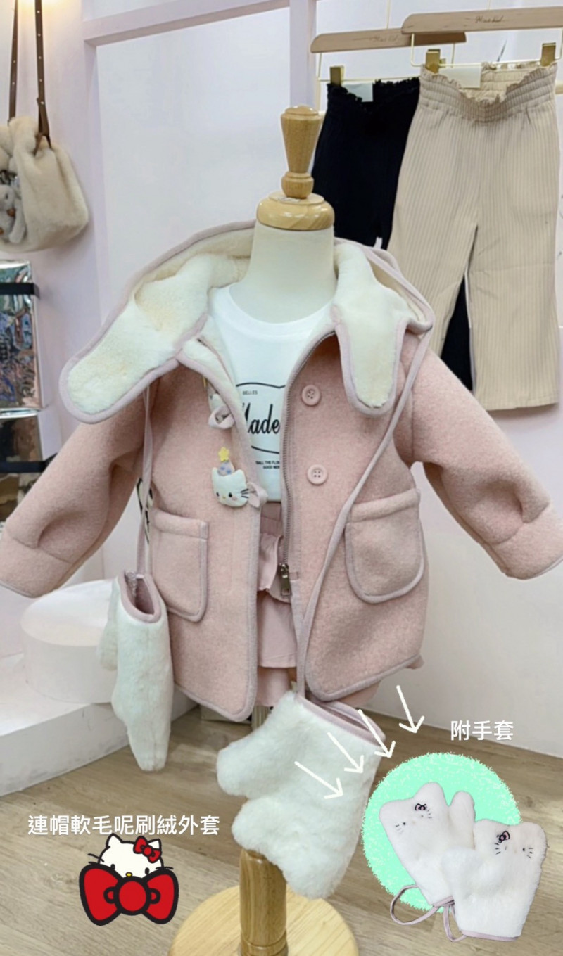 熱賣中🔥 即將售完KTS1110(10)-1505粉毛呢KT連帽外套附手套