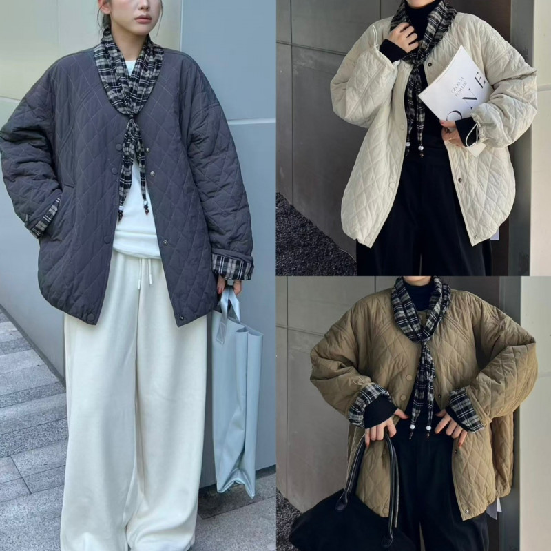 熱賣中🔥 即將售完08.A280002菱格紋鋪棉外套-灰,白,黑 胸圍70 衣長72cm