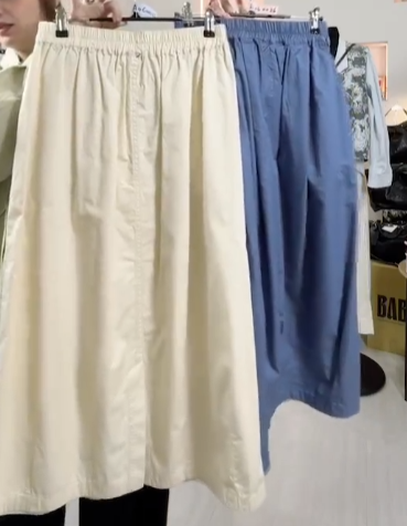 熱賣中🔥 即將售完06.A060026輕鬆百搭半身裙-米白,藍 腰圍最大40吋 裙長82cm