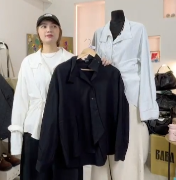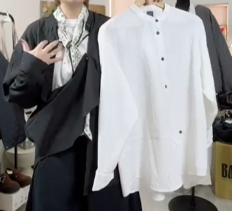 熱賣中🔥 即將售完11.A020083質感壓紋立領天絲襯衫-白,黑