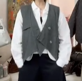 熱賣中🔥 即將售完26.A02006409韓系帥氣水洗皮背心-黑灰