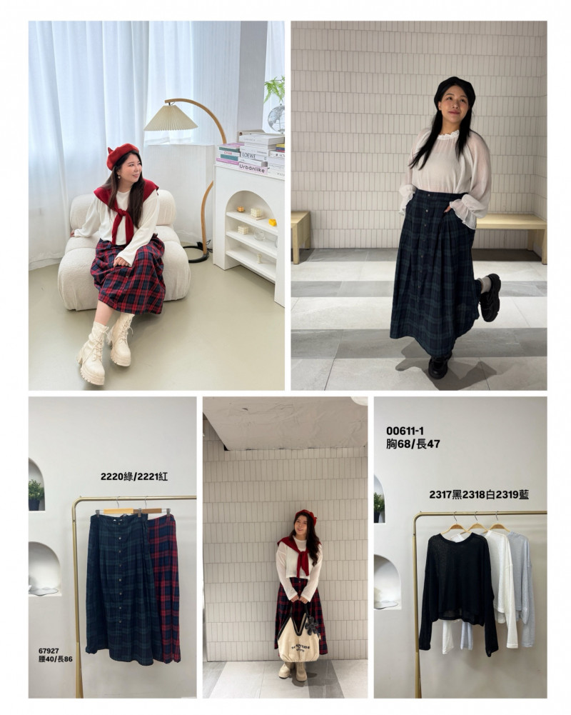 熱賣中🔥 即將售完女PF1-0919(08)-日系排釦格子長裙